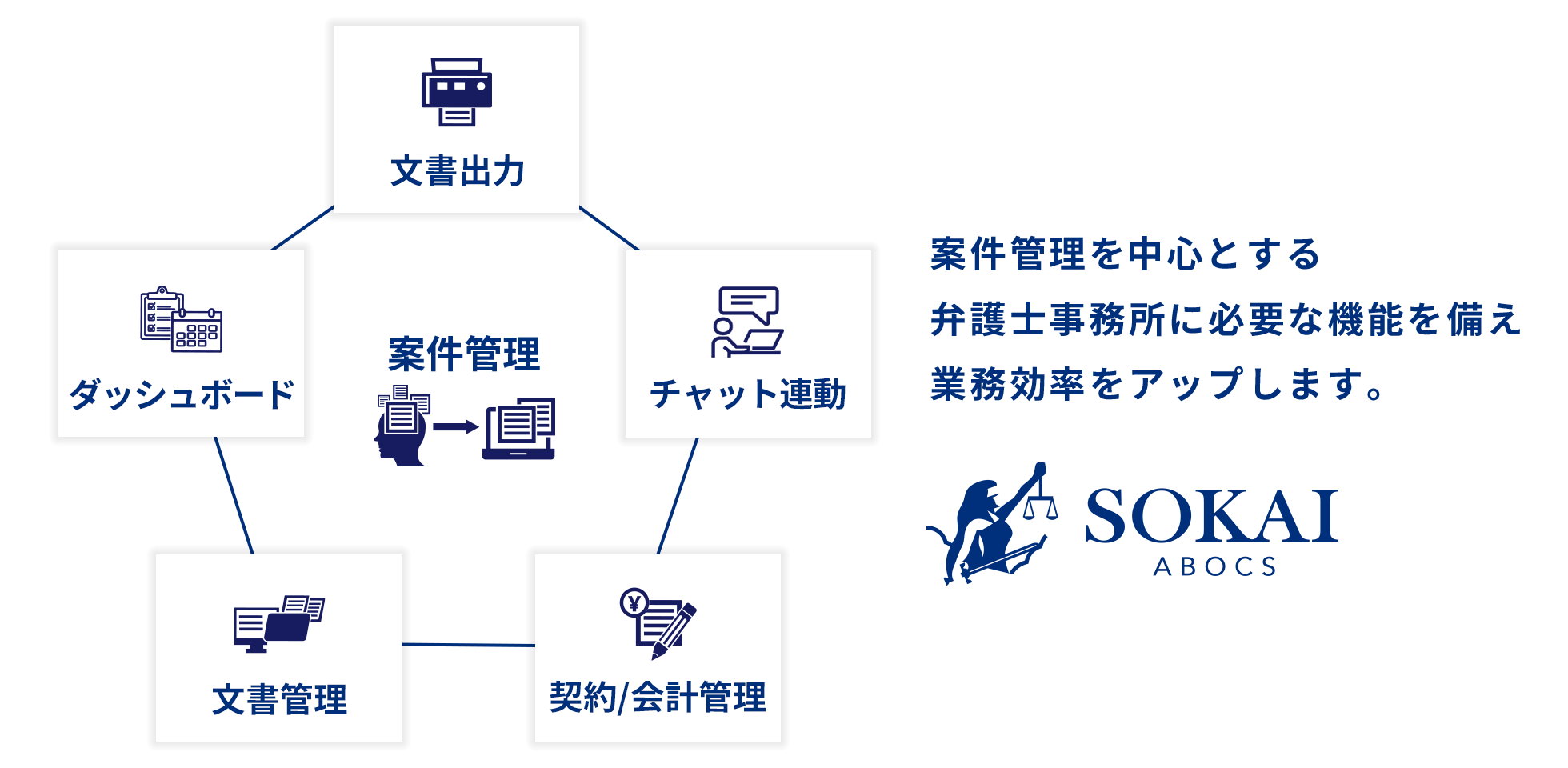 SOKAIは、現役弁護士の声をもとに開発した、弁護士業務を統合的に支援するクラウド型サービスです。